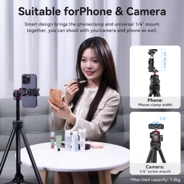 ✔ 📏 Altura Ajustable: Desde 50 cm hasta 136 cm, perfecto para diferentes ángulos y tomas.